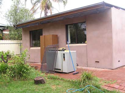 There's no gutter, so the recent rain had been running down the laundry wall.