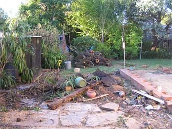This is what the back looks like with the Plum, lemon (actually a Kaffir Lime) and macadamia trees removed.